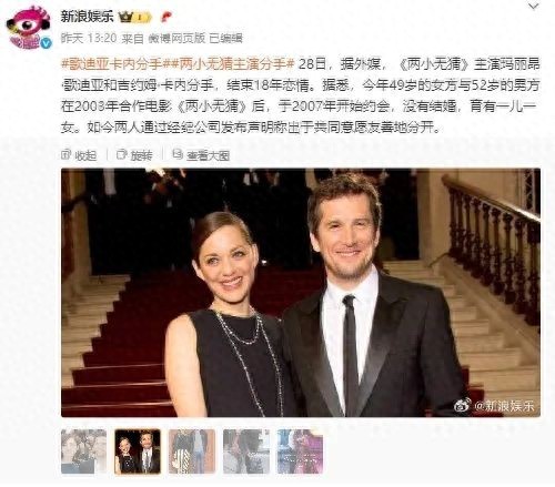 6月28日据媒体报道,《两小无猜》主演玛丽昂·歌迪亚和吉约姆·卡内分手,结束18年恋情。