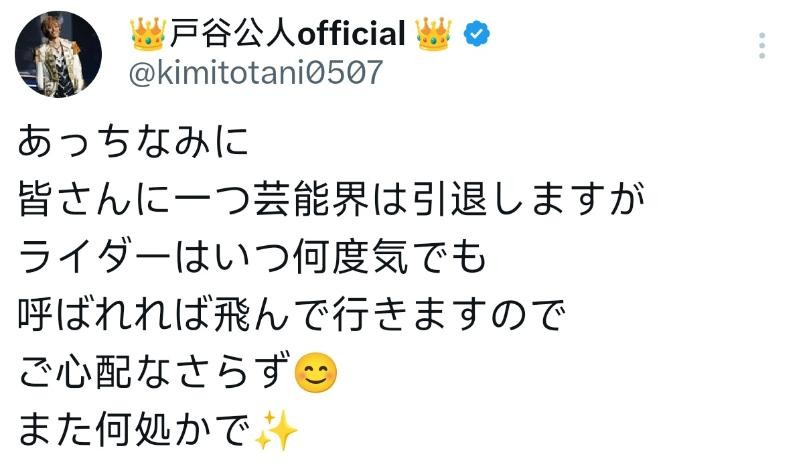 饰演海东大树/假面骑士Diend的户谷公人。在X(推特)宣布日前已经结婚(其结婚对象算是小日子那里人气不错的一位网红妹子)同时他宣布会从艺能界中引退,表示未来会以家庭为重心,从事其塔的工作。