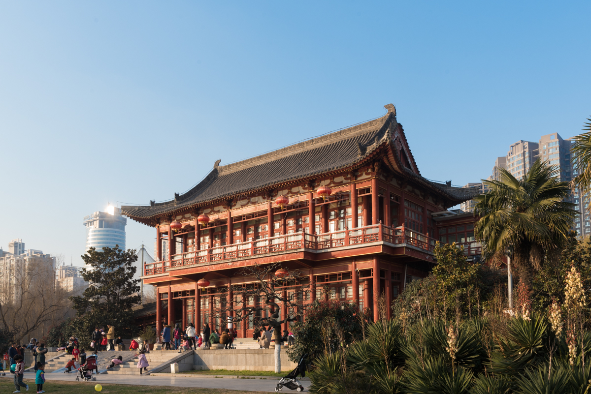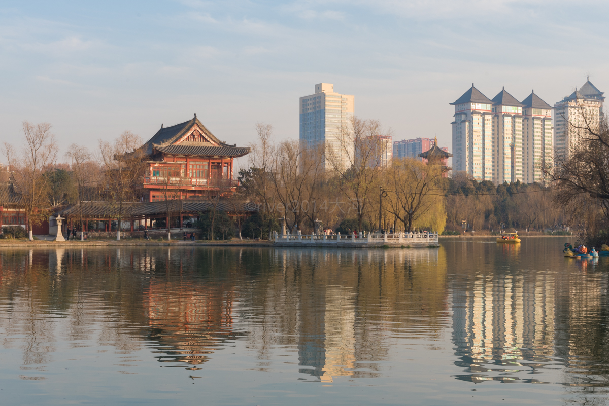 现在的兴庆宫公园,就是在唐代兴庆宫原址上修建起来的。兴庆宫公园建于1958年,是西安市内最大的城市公园。公园占地面积750亩,其中湖面150亩,以龙池为中心,又建起了不少仿古建筑,依托自然山水建起了一座园林式的公园。