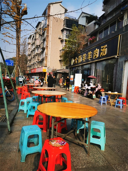 大约11点半左右,各羊肉汤馆就开始有客人陆续进入,不到12点,很多馆内就已坐满了客人,为满足客人需求,老板们不得不在街面上摆放桌椅,毕竟,今天是他们闷声发财的好机会。