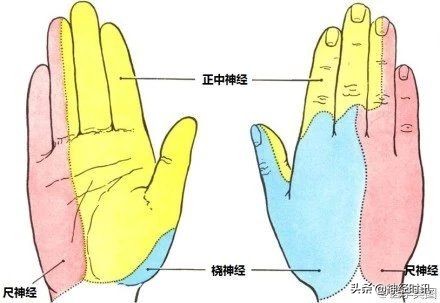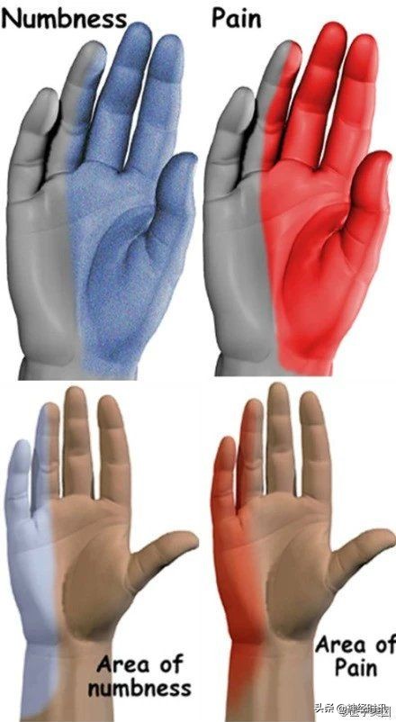腕管综合征(上)与肘管综合征(下)的麻木、疼痛区域