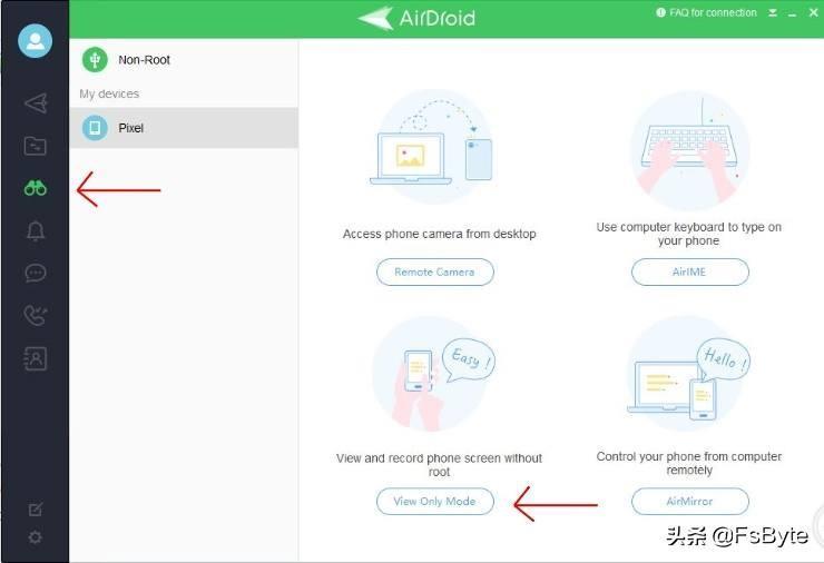在PC上打开AirDroid点击“ AirMirror”选项卡点击仅查看模式转到您的Android设备,然后在弹出窗口中点击“立即开始”。