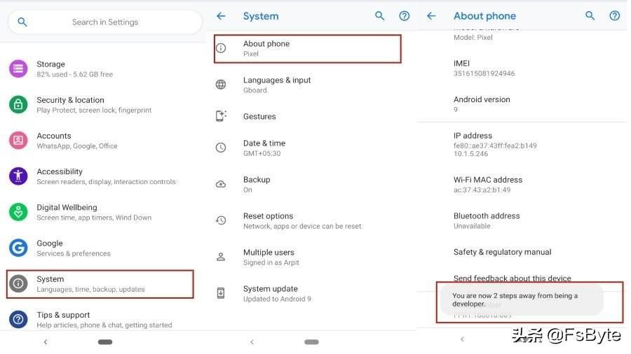 转到您的Android设置⇒系统⇒关于手机向下滚动并点按内部编号五次返回系统设置您现在将看到开发人员选项