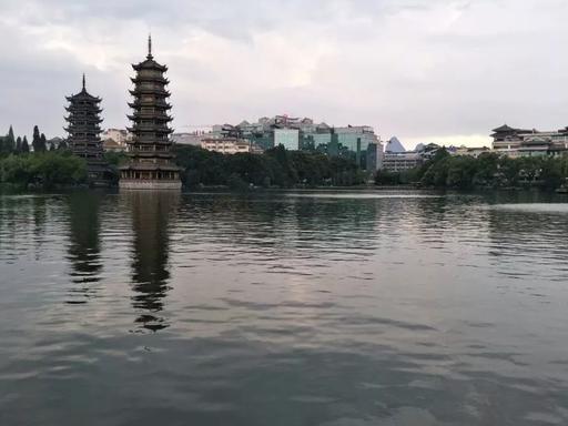小小木龙湖,一片湖,一座桥,一座塔,一些荷,一些花,美。桂林山水甲天下,不是白说的。