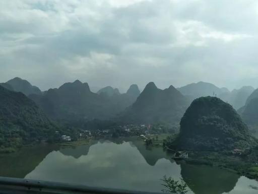第二天,去兴坪古镇的路上,导游让司机停车,我们下车拍照。瞧,这就是桂林,峰峦遍地,典型的喀斯特地貌。一片水,如镜,照出峰峦的秀丽。