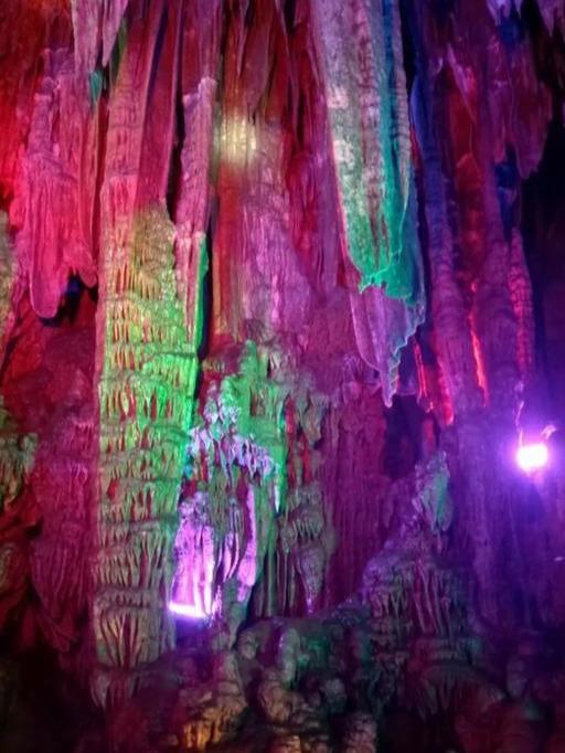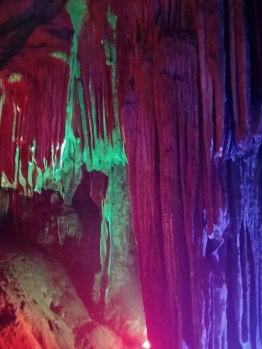 奇特的石钟乳,被彩色灯光穿上了美衣,各种形状,漂亮!