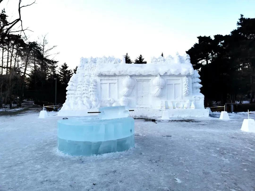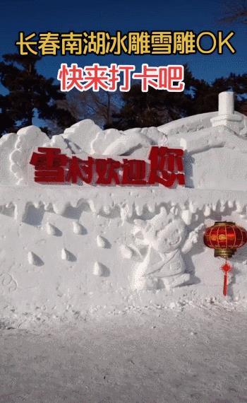 从侧门进入公园,转过几道弯后,一个白色的村落赫然出现在眼前。冰雕的磨盘、雪做的灯笼,以冰与雪相结合的方式,融入了传统民俗的文化,将吉林这一方山水人情展现得淋漓尽致。