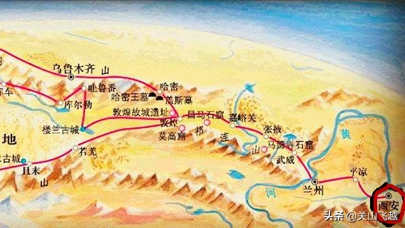 它连接亚洲、非洲和欧洲的古代路上商业贸易路线。“丝绸之路”一词源自1877年德国地理学家李希霍芬在《中国亲程旅行记》一书中,将以长安为起点,穿越西域,横跨亚欧非的那条古代陆路通道称之为“Silk Road”,并得到学术界认同。虽然得名较晚,但它的历史通常是从公元前139年张骞第一次出使西域开始的。张骞出使西域开通了促成东西方经济文化交流的交通线,从长安经河西走廊,再分为南北两道,南道是出阳关(今甘肃敦煌西南)西行,北道是自玉门关(今敦煌西北)西行,全长约7000公里,通过丝绸之路,中国的丝绸、铁器、打井技术等传到西域,西域的土特产、乐器,印度的佛教等也传入中国。丝绸之路是汉唐千余年间中外经济、文化交流的重要通道。我在吐鲁番、焉耆有些地方,都有看到过“古丝绸之路”的标志。
