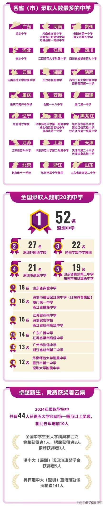 除了广东省之外,港中深在其他省份也备受考生青睐,尤其是高分考生。