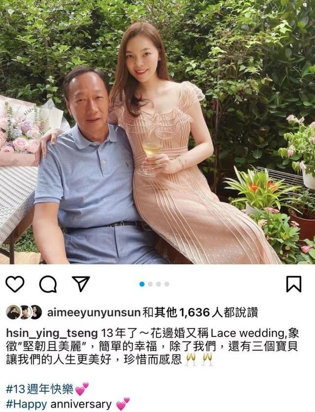 在2021年7月26日这天,刚好是曾馨莹和郭台铭的结婚13周年的纪念日,