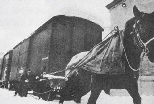 驴马拉拽的火车