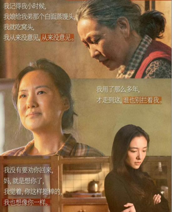 从李红妈妈的从无怨言,到李红委曲求全半辈子才决定出走,再到女儿晓雪从始至终都带着的自我独立的审视,并最终让丈夫做出了让步。