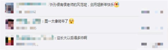 不少网友在看过照片后纷纷评论两人的外孙有外公年轻时的风范。
