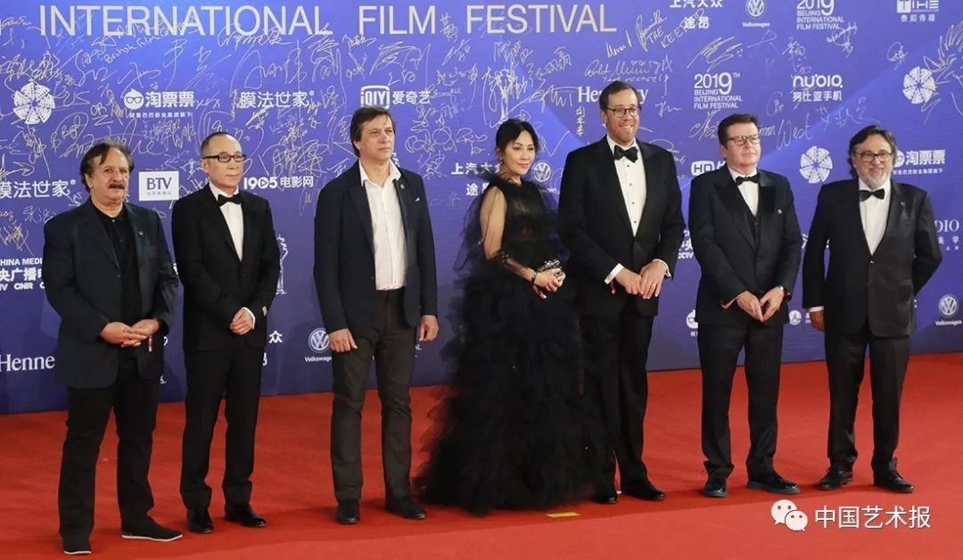 闭幕红毯仪式上,国内外影人相聚集。在本届“天坛奖”国际评委会主席、美国著名导演罗伯·明可夫的带领下,七位评委踏上红毯。在过去的几天里,评委们以专业的角度认真观看入围影片,有序而紧张地开展“天坛奖”评选工作,力求发现每部优秀电影的艺术价值。