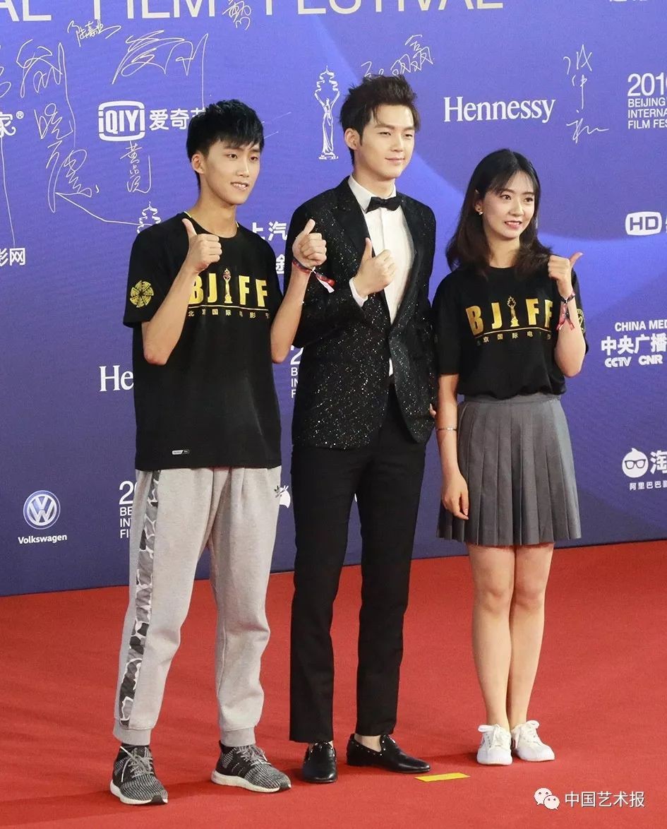 第九届北京国际电影节 志愿者宣传大使董力和志愿者代表 中国艺术报记者张璐 摄