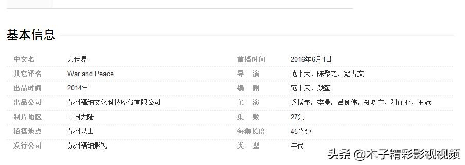 《大世界》是苏州福纳影视出品的年代剧,由范小天担任总导演,乔振宇、李曼、吕良伟、郑晓宁、阿丽亚、王冠等主演 。