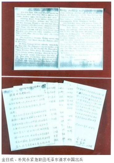 斯大林接到金日成的求援信后, 一方面鼓励北朝鲜政府不要放弃希望,尽力抵抗;一方面,斯大林对于金日成提出"要求武装援助的问题",声称"要与中国同志商量。"并要求苏联驻中国大使尽快转告中国领导人,请求中国军队立即向三八线推进,掩护朝鲜人民军在三八线以北组织后备力量。这样就把援助朝鲜的责任完全推给了中国。