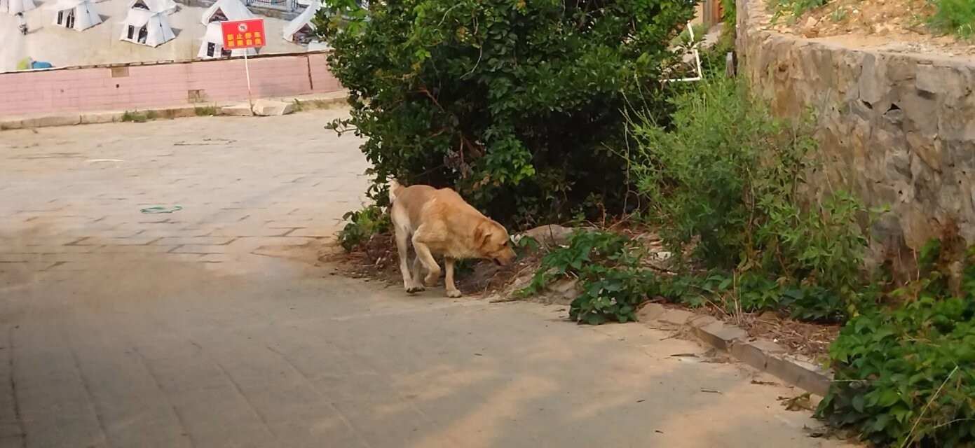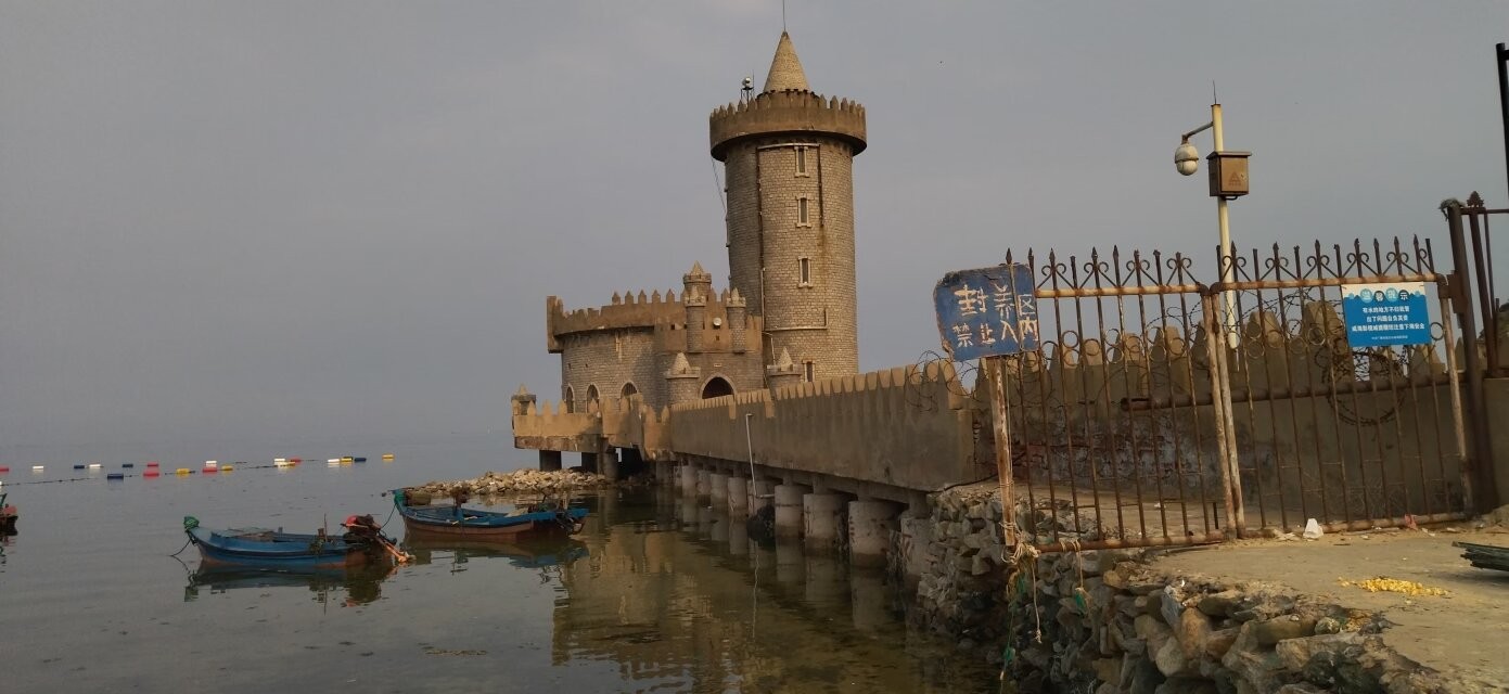 然而,影视城的没落是掩饰不住的,用空无一人形容一点不为过,这条狗是我进入影视城里见到的除门卫之外的第二条生命,还有一位赶海的大姐(第三位)在海蛎子的浓重气味下,赤脚下到海里捡拾海蜇。