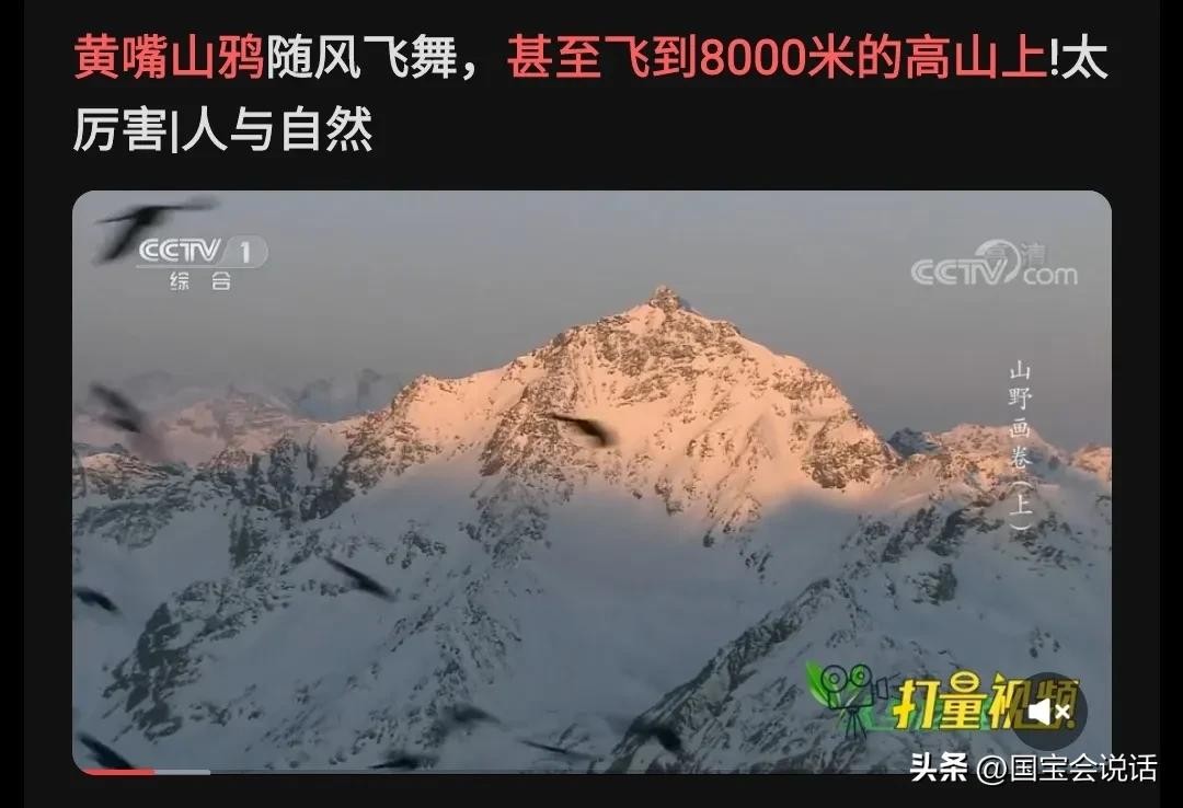 很多观众说,高空那么高,怎么会有鸟呢?而这个。导演组和那些专家也都讲过了,在我国的西部,高原地区确实有这种鸟。准确的来说是黄嘴山鸦。