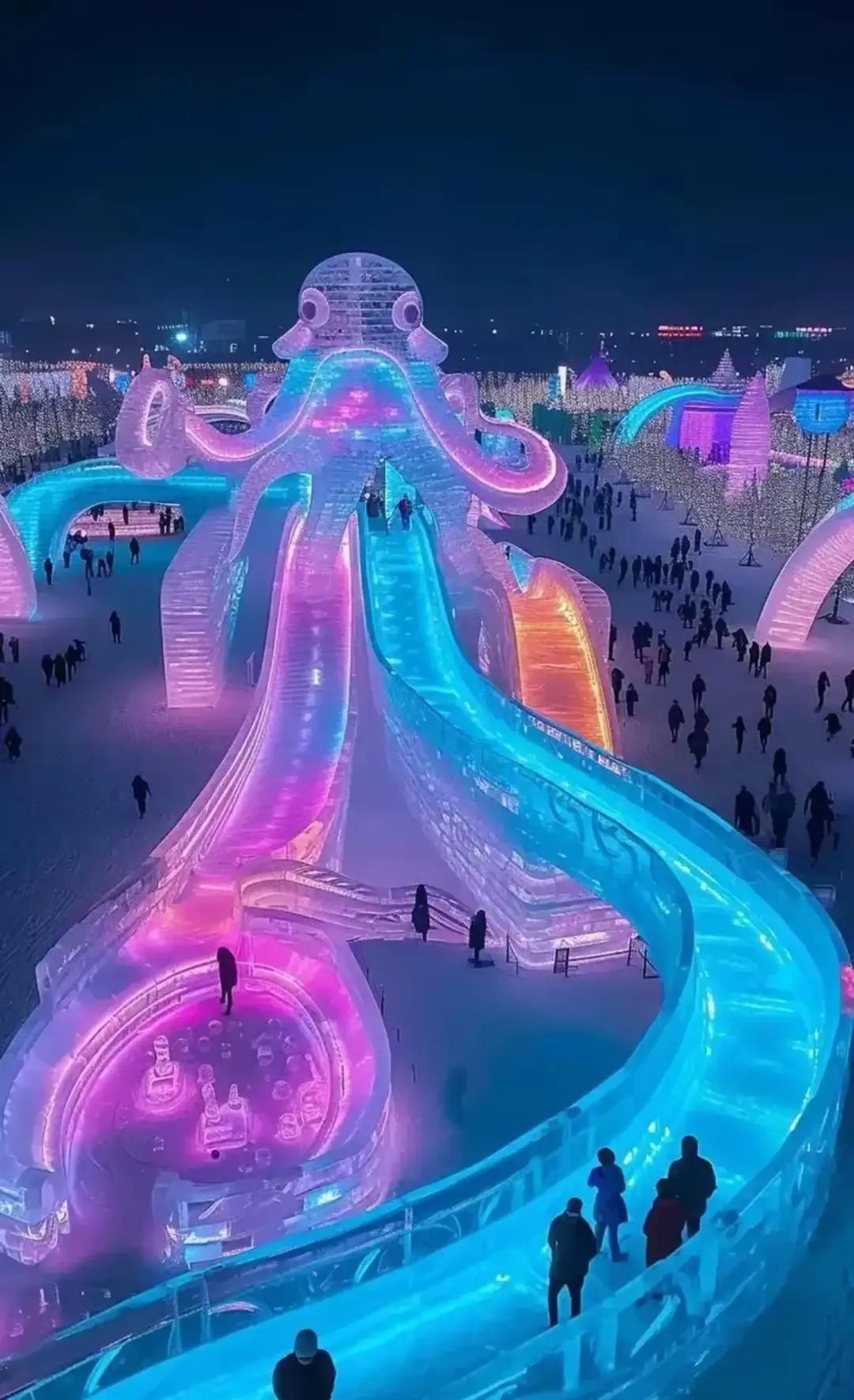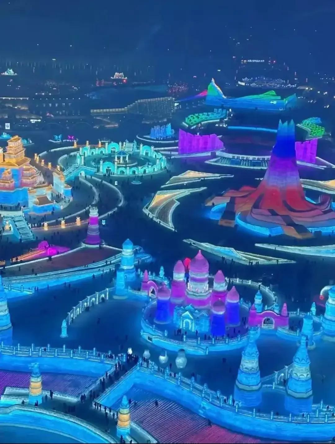 就说这冰雪大世界吧,第 26 届那个规模,大得吓死人!整整 100 万平方米,啥概念呢?就是你在里面逛上一整天,两条腿都得累得直打晃。而且这次的主题可太酷了,“冰雪同梦 亚洲同心”,到处都能看到 2025 年亚冬会的元素,感觉就像是把全亚洲对冰雪的热爱一股脑儿都聚到这儿了。