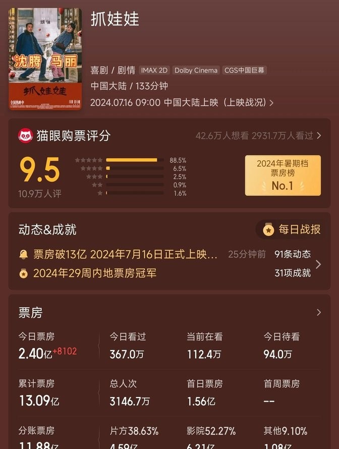 2024年7月15日,开心麻花最新力作《抓娃娃》在全国各大院线正式上映。这部由沈腾、马丽主演的喜剧电影一经上映就引发了观影热潮,不仅票房一路飙升,更是在网络上掀起了一波又一波的讨论热潮。
