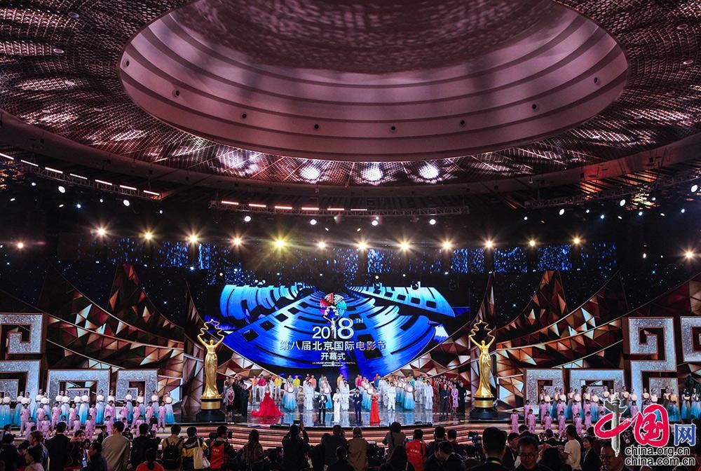 4月15日晚,第八届北京国际电影节在北京雁栖湖国际会展中心举行开幕式。中国网记者 伦晓璇 摄