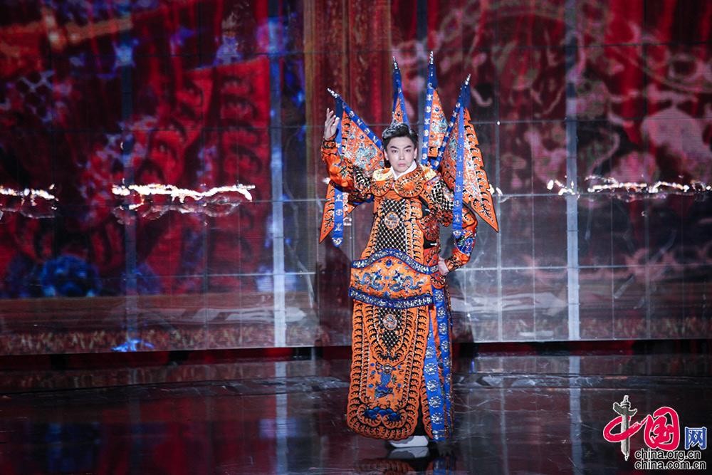歌手王力宏以《定军山》为核心创意,亲自编创了歌曲《龙的传人》,并与谭门第七代传人、青年京剧演员谭正岩以跨界合作的形式同台演出。中国网记者 张若梦 摄
