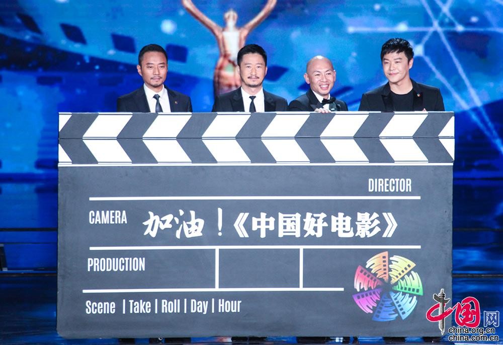 国产电影票房榜前三名主创张涵予、吴京、林超贤、陈思诚共同启动“天坛行动”。中国网记者 伦晓璇 摄