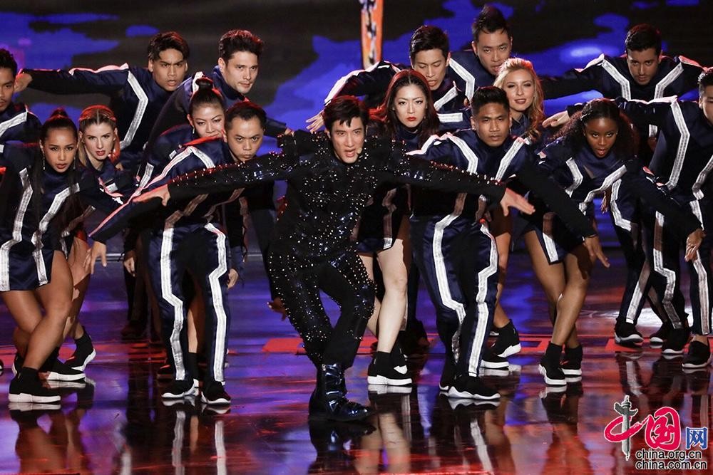 主持人张卫健带来大型功夫秀《真英雄》。中国网记者 伦晓璇 摄