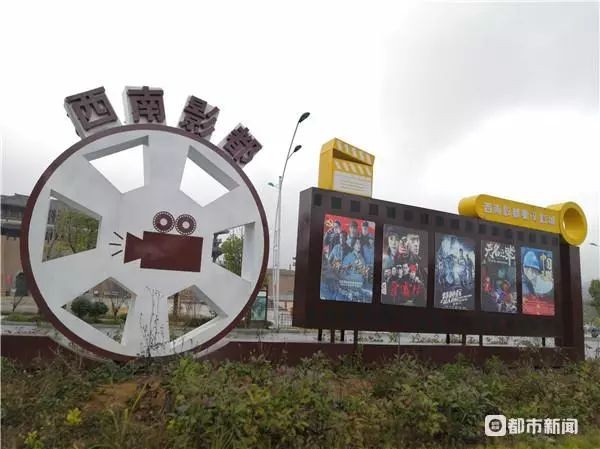 前往都匀秦汉影视城的都凯大道上,与影视剧相关的一张张海报成为点缀这里的影视元素。影视城内外,一些商家服务员打扮成古代店小二的模样。