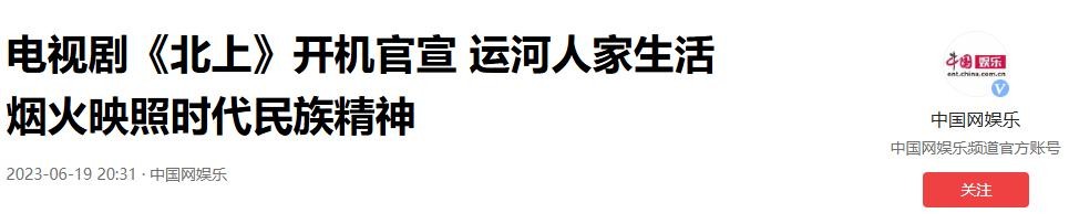 中国网娱乐,2023-06-19,《电视剧《北上》开机官宣 运河人家生活烟火映照时代民族精神》