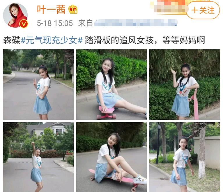 5月18号,叶一茜在账号上晒出六张女儿的照片,称呼森碟为“踏滑板的追风女孩”,一句等等妈妈啊,既突出了森碟的快,也让人感受到妈妈追不上女儿的无奈。