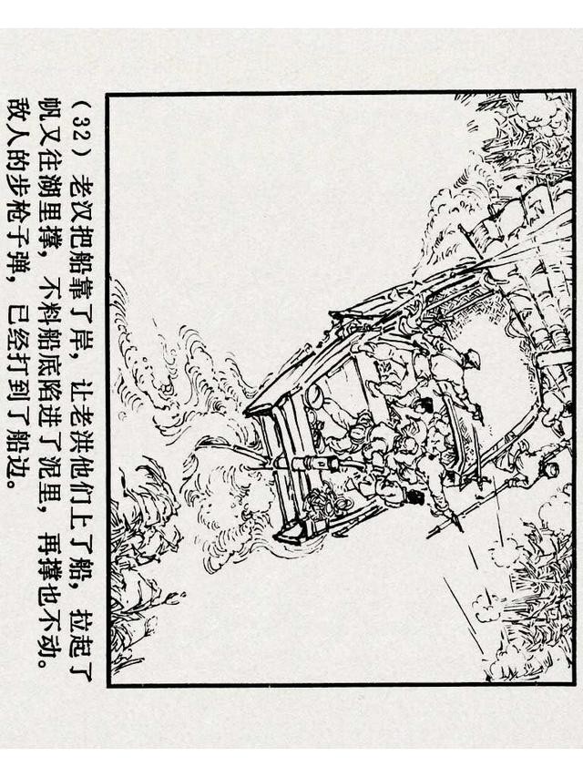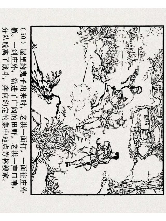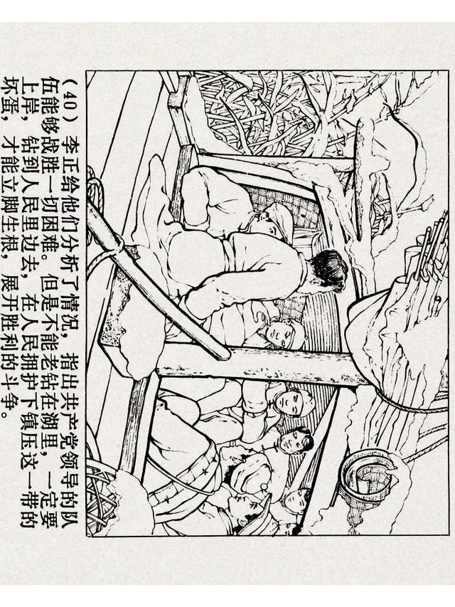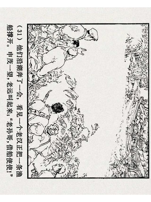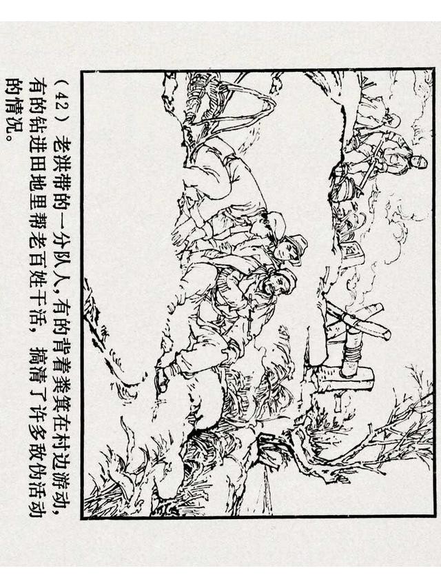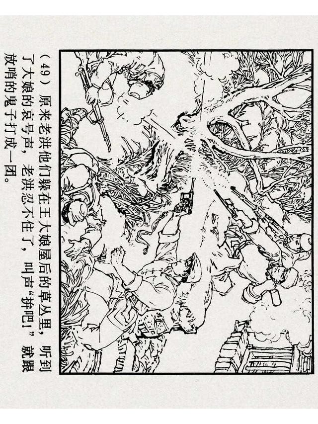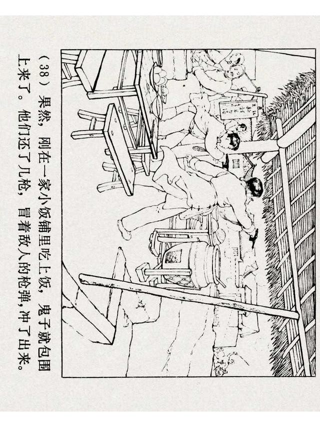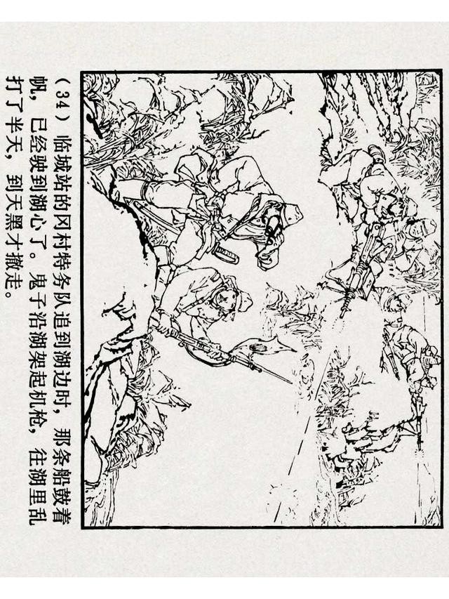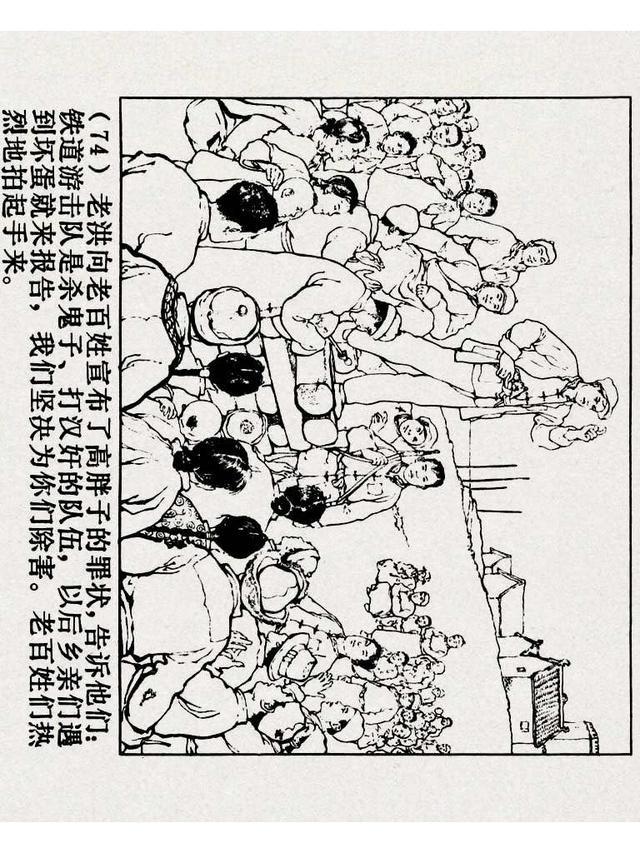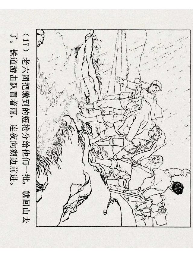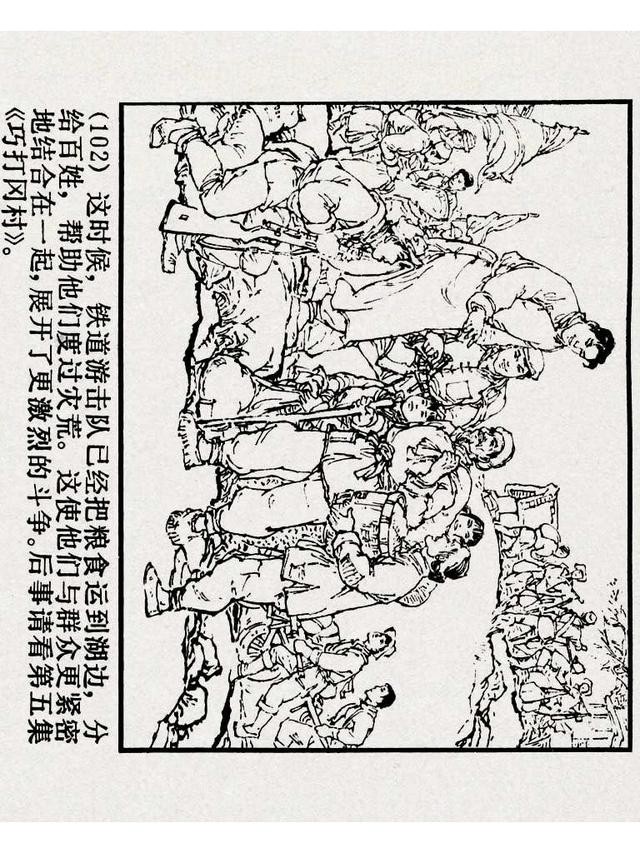 《铁道游击队》(四)《杨集除奸》,上海人民美术出版社,原著:刘知侠,改编:董子畏,绘画:丁斌曾 韩和平,1978年,102图。
