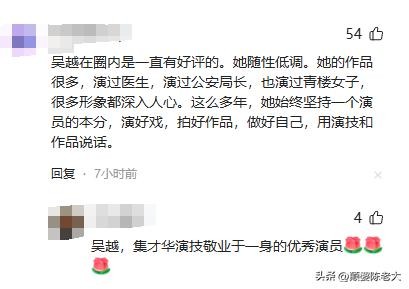 有网友站在第三视角介绍了一下吴越,其实她在娱乐圈一直都是有口皆碑的,而且兢兢业业演戏也没有任何的绯闻和负面新闻。