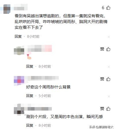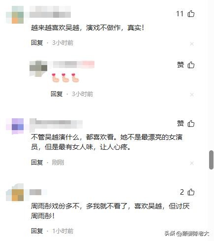 但也有网友有不一样的看法,自己确实是冲着吴越去看这部剧的,只不过连第一集没看完就放弃了,开局就是乱哄哄的,而且重点戏份都是在周雨彤身上。