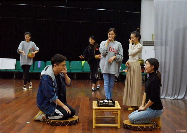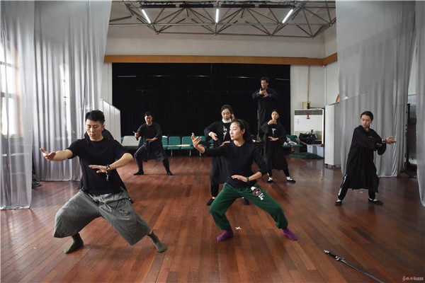 据说,在排练正式开启前,话剧院特别进行了为期十天的戏剧工作坊活动。和以往的传统话剧不同,《崂山道士》借鉴了中国传统戏曲的身段元素,这就要求演员不仅要在形体上有扎实的基本功,还要善于巧妙运用道具来配合身段、手势的表演,外化内心情感。