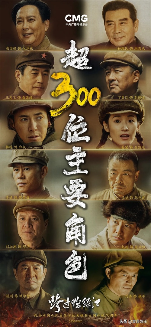 第一部,《跨过鸭绿江》。该剧是由中央广播电视总台出品,董亚春执导,余飞任总编剧,唐国强、丁勇岱领衔主演,孙维民、王志飞、刘之冰、姚刚、王挺、王同辉、刘涛等主演的抗美援朝战争剧。 讲述了抗美援朝战争中中国人民志愿军的英勇事迹。影片以彭德怀元帅为核心人物,展现了志愿军如何在武器装备和后勤保障远不如敌军的情况下,凭借顽强的毅力和英勇的斗志,一次次地击退了敌人的进攻,最终取得了战争的胜利的故事 。