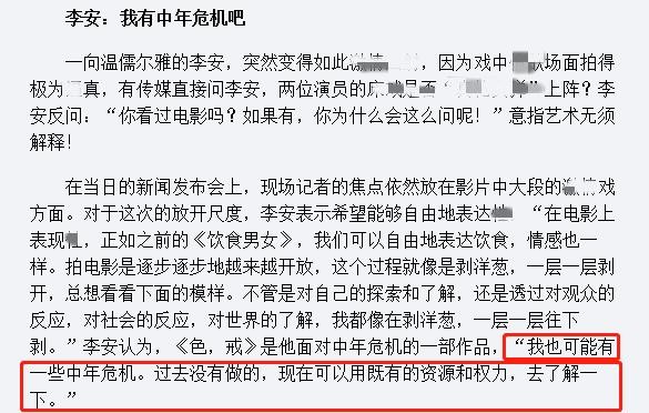 当时,李安头顶奥斯卡小金人的光环,重返华语电影圈,国内外的关注度都非常高,李安自然也怕翻车: