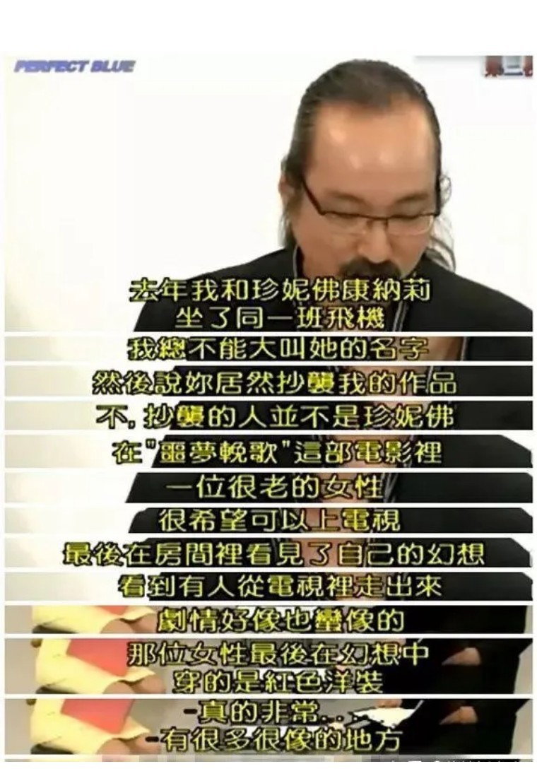 大师今敏,于2010年8月因胰腺癌去世,他生前也在一档电视栏目中,不无揶揄地“诙谐”表达过对达伦·阿伦诺夫斯基的不满。只是,幸亏今敏没有看到在他去世一周后上映的《黑天鹅》。