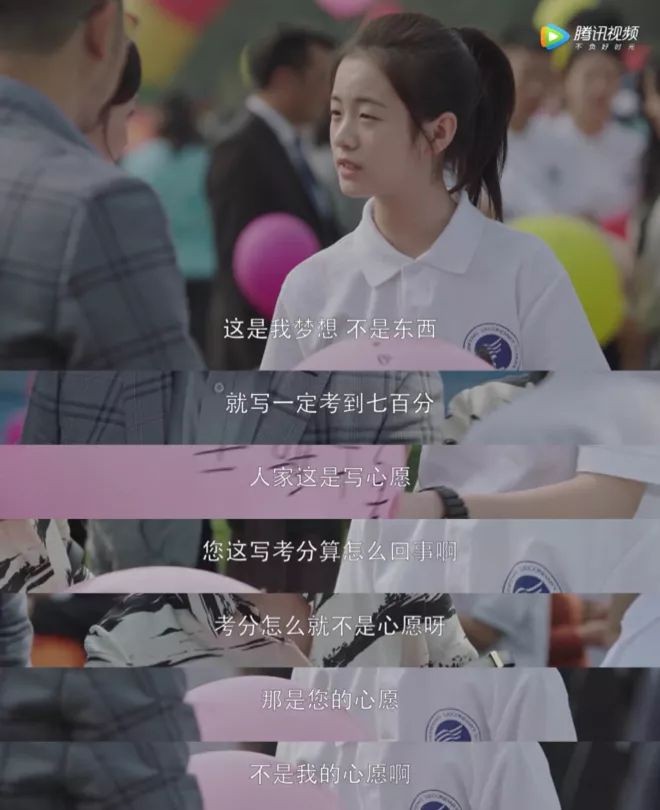 誓师大会上,宋倩一再要求英子在写愿望时加上“一定考到七百分”,而英子也指出,这不是自己的愿望,是宋倩的愿望。