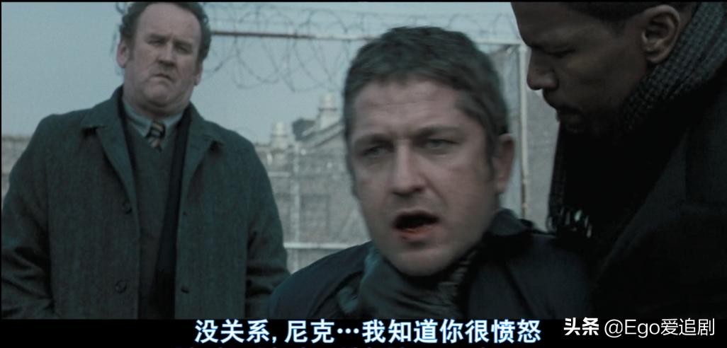 看到这里你一定会大呼过瘾,因为克莱德的复仇计划实在是精密,令人难以找到破绽。一个身在监狱里的人,却能控制外界自由人的生死,这确实太难了。但是同时,作为父亲的克莱德真的在复仇的道路上陷得太深了。当尼克因为朋友愤怒而挥拳打向克莱德后,克莱德跪在地上质问尼克,为何当初选择向罪犯妥协,而不是努力去维护法律的公平时,尼克真正地体会到了克莱德当初的感受。同时,影片在这里也成为了一个转折,尼克终于意识到了自己错误,自己向罪犯妥协的行为实际上也是在亵渎公正,是另一种犯罪。而克莱德却没有认识到自己的行为,此时此刻已经严重越界,在复仇火焰中越陷越深的克莱德不打算停止自己的极端行为。这一刻,正反方的真正身份开始区分开!