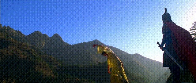 一出场也是惊艳了不少人,与成龙扮演的蒙毅在回城的时候在山顶翩翩起舞的身影,到现在还赫然在目。