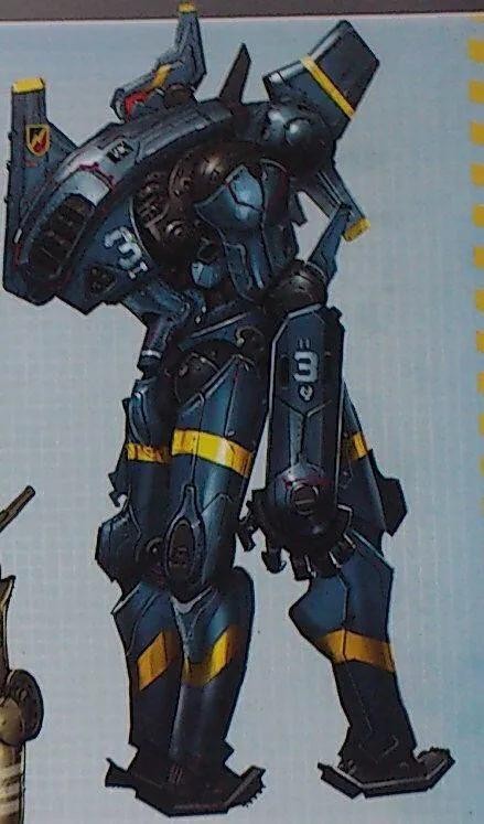 澳大利亚三代机甲;电力驱动;高75米;重1673吨;格斗风格是街头格斗术;装备:背部平衡翼、头部逃生系统;武器:双臂能量火炮、原子弹锥;驾驶员是约书亚·格里芬和一个无名氏;击杀了4只怪兽