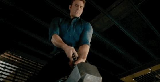 雷神之锤是奥丁命小矮人利用一颗即将湮灭的恒星核心提取出来的材料铸造而成,并且别奥丁附魔“只有有资格的人才能举起来(奥丁指定的人及高尚品格,内心纯良之人)”;这意思说复仇者联盟的人幻视内心最纯净,美国队长动了一下下锤子,不知道是给雷神面子假装拿不起来还是真的拿不起来,不过也说明美队的三观很正。