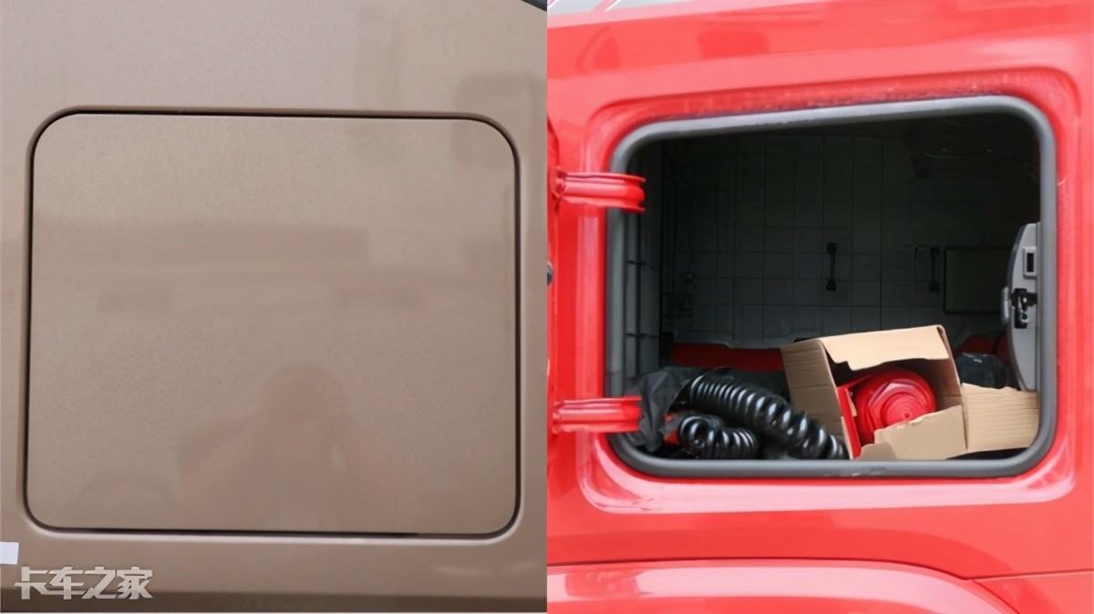 值得表扬的是两车都具备外置储物柜的功能,有些不方便放在驾驶室里的工具等随车物品均可放置在驾驶室的外罩储物柜里,而且相对安全,东西失窃的几率也较少。