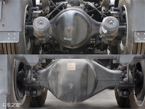 天龙旗舰在底盘三大件的配置上有较多的选择,光是后桥就有着3.64、3.42、3.07、2.69这四种,相对比较主流比较多选择的在3.42与3.07这两种后桥速比,而2.69这小速比会更适合跑快递的专线高时效物流。