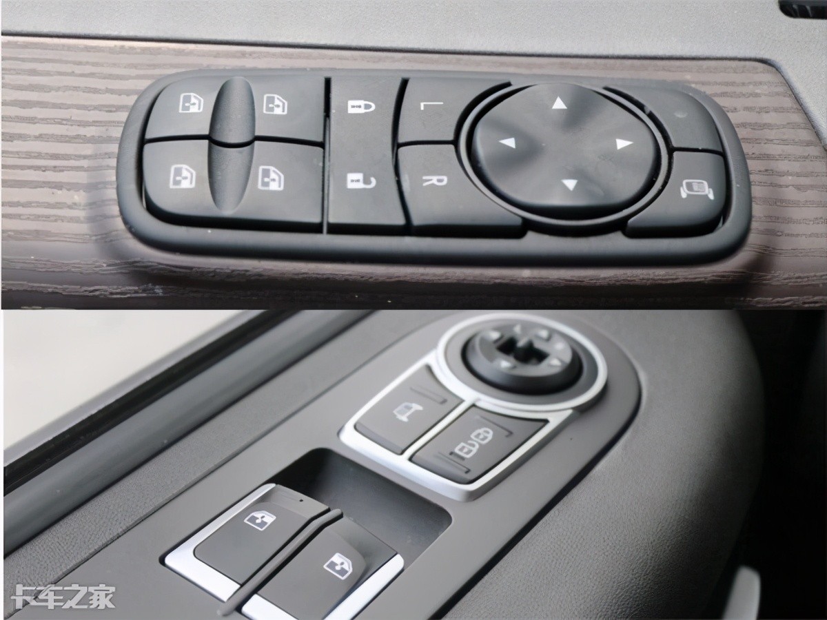 后视镜加热、电动调节功能与车窗控制集成在门板区域上,功能性丰富。现代创虎在按键周围还采用了镀铬材质作为装饰,略显精致,天龙旗舰虽然没有采用镀铬材质,但是其控制区域附近采用了木纹饰板,做工材质的触感相对也是比较好的。