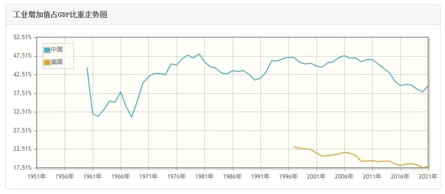 由于美国经济的金融化以及全球化的影响,美国产业结构从劳动密集型转向资本密集型和技术密集型,同时受到劳动力成本和环境保护的影响,许多中低端产业被转移出了美国,美国制造逐年空心化。