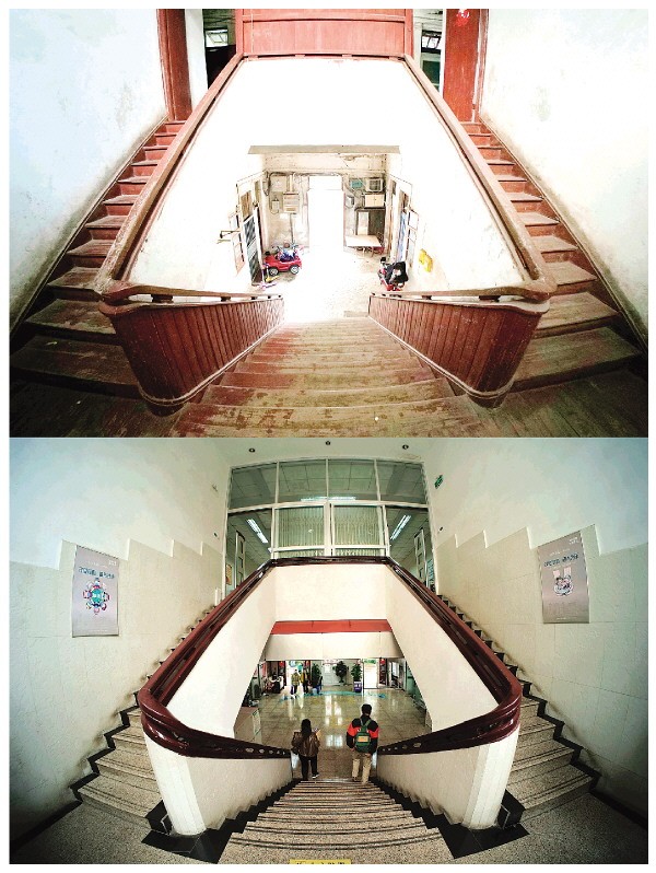 图③:广西桂林图书馆王城旧馆(上)与榕湖分馆(下)的内部设计如出一辙。