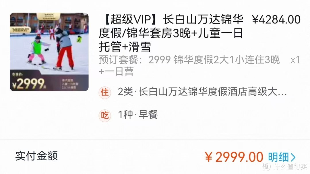 早在今年7月,长白山万达做第一波雪季早鸟预售的时候,我就自己下手囤了房券,并比较早预约了。因为考虑孩子滑雪需要教练陪同,特地选择了带独立营的套餐。